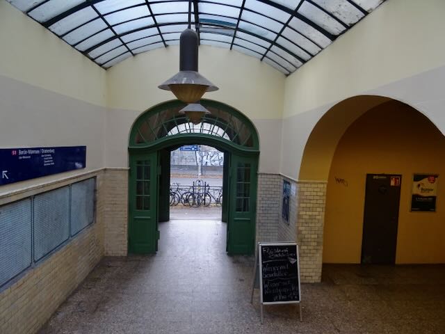 駅舎には、出入り口が北東側にしかない。反対側の南西側に出入り口がないのは、南西側にはガーデンハウスしかないのと、その向こうには東西ベルリンの国境線、1961年からはベルリンの壁があったからだ。