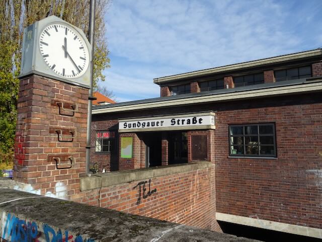 1930年代ベルリンでは、社会住宅がたくさんできた時期。駅の周辺1キロメートルに3000人を収容する集合住宅地帯ができていた。駅は、その新しい住民のために設置されたともいえる。