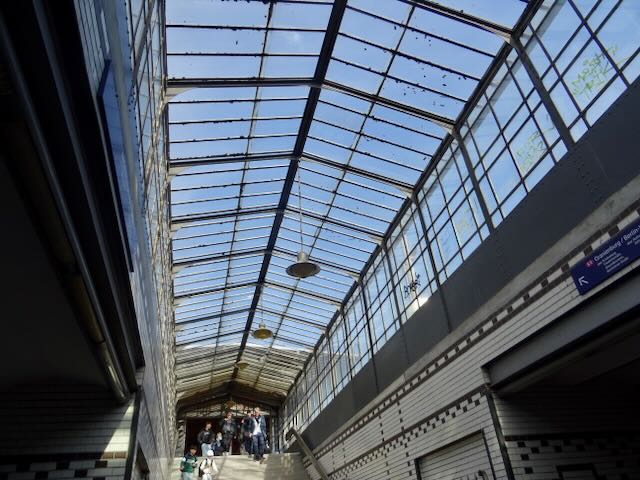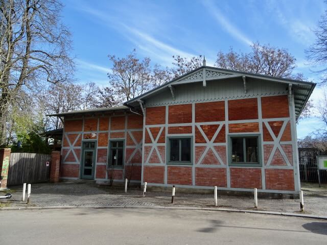 フリーデナウ駅 Sバーン1号線のフリーデナウ駅は1874年、新しい住宅地区フリーデナウの住民の足となるよう設置された。 しかし駅はフリーデナウ地区ではなく、その北のシェーネベルク地区にある。 駅の設置は、商人のシュポンホルツが住民団体と一緒に鉄道会社と交渉した。シュポンホルツは銀行などと共に資金を提供し、敷地も提供している。 駅は1891年、ローカル線用に新しい線路が設置されたことで移設され、現在の形になった。それまでの駅舎はスイス式の建物で、現在駅出入口横に残され、イベントハウスなどとして使われている(2番目の写真)。 駅は、ガラス張りの温室様式となっている(4番目の写真)。 | ||