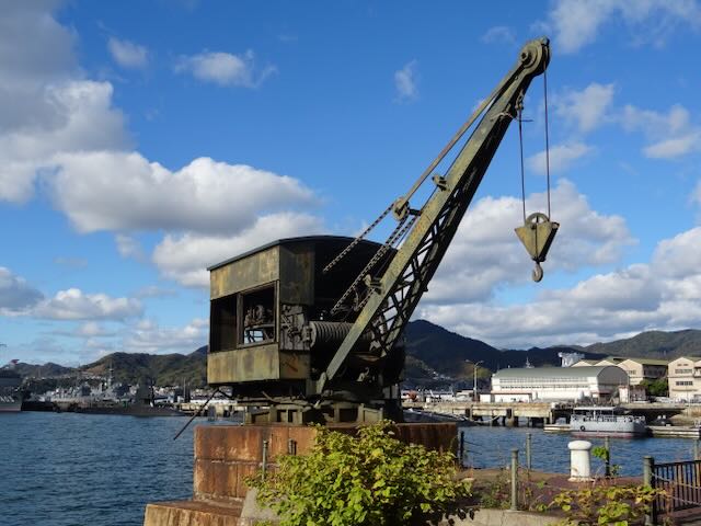 呉には当時、大日本帝国の海軍基地がありました。その後も現在、海上自衛隊の基地となっています。
