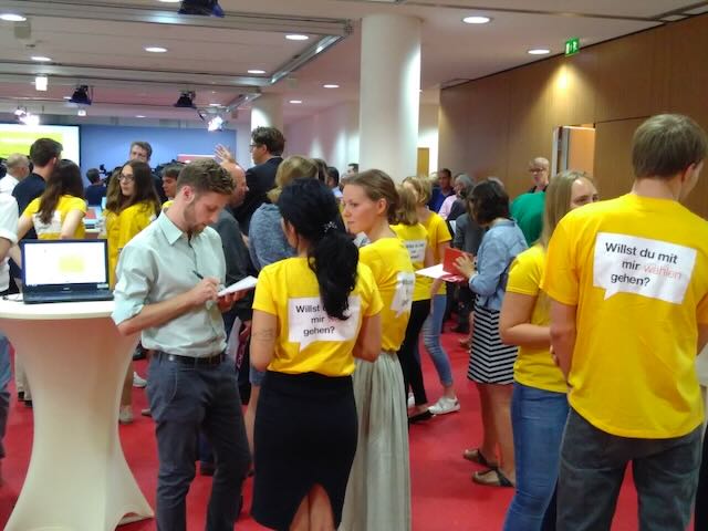 写真は、2017年の連邦議会(下院)選挙前に、各政党の代表と懇談するボートマッチ作成グループの若者。若者たちはその時、メディアのインタビューも受けていた。