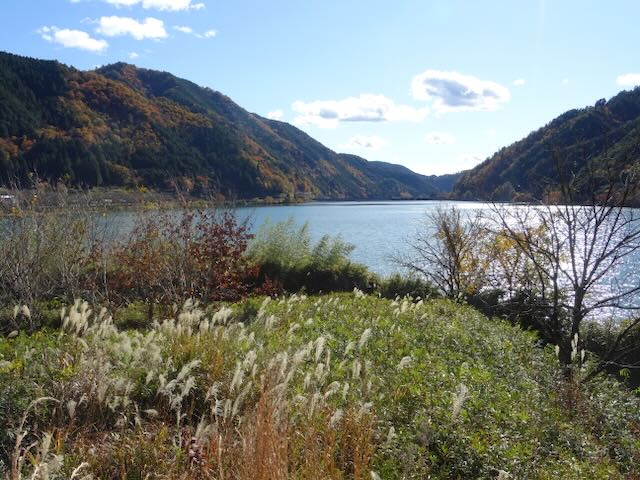 天気もよく、最高の紅葉狩り。ただ富山県内の神通川沿いでは、左側の方が景色がいい。空いている席に慌てて移ったが、もう遅い。それに逆光で、撮影するには適さない。
