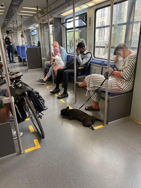 車内では、黒い犬がのんびりと横たわっている。怖がっている様子もない。自転車も堂々と、車内に立てかけてある。自転車の持ち込みは有料なので、自転車用のチケットを持っていないと、無賃乗車となるので注意が必要だ。
